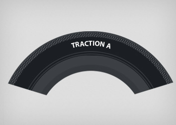 Traction is a measurement of a tire's ability to stop on wet test surfaces of asphalt and concrete under controlled conditions. Traction grades are assigned by the UTQG system and branded on the sidewall. Traction grade is determined only for straight-ahead, wet braking on concrete and asphalt. It doesn't include cornering, which may also be an important customer performance need.