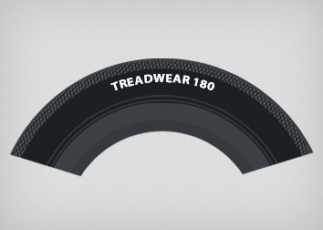 Treadwear is a measurement of tread durability. Tested against an industry standard, the assigned numerical grade indicates how well the tread lasts compared to an index standard of 100. A treadwear rating of 200 means the tread wears twice as well as the standard. Actual wear depends on the conditions under which the tire is used. Driving habits, service practices, differences in road surface, and varying climates all affect treadwear.