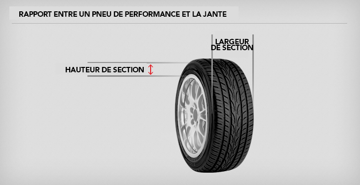 Souvent appelé profil ou série, le rapport d’aspect d’un pneu est déterminé en divisant la hauteur de section d’un pneu par sa largeur de section quand sa pression de gonflage est au maximum, qu'il est monté sur une jante mesurée approuvée et qu’il ne supporte aucune charge.